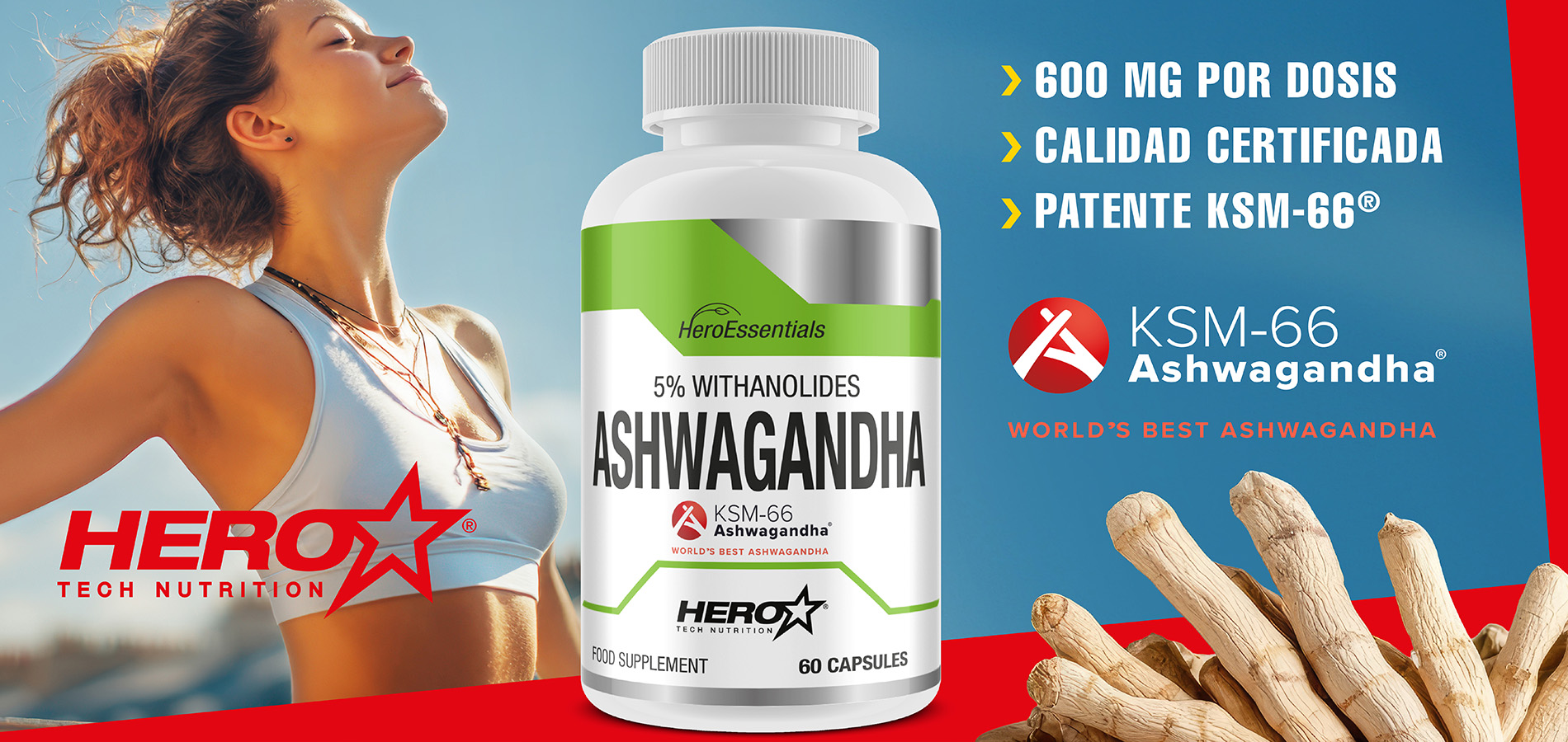 Extracto de raíz de ashwagandha 12:1 (Withania somnifera (L.) Dunal) 5% withanólidos (KSM-66®), cápsula [agente de recubrimiento (hidroxipropilmetilcelulosa)], agente de carga (celulosa microcristalina), antiaglomerantes (dióxido de silicio, sales magnésicas de ácidos grasos). ADVERTENCIAS: Mantener en lugar fresco y seco, el calor y el sol pueden dañar el envase. Mantener fuera del alcance de los niños más pequeños. Los complementos alimenticios no deben utilizarse como sustituto de una dieta equilibrada. No superar la dosis diaria expresamente recomendada. Puede contener trazas de gluten, leche, huevo, soja, apio, dióxido de azufre y sulfitos, pescado, moluscos y crustáceos.